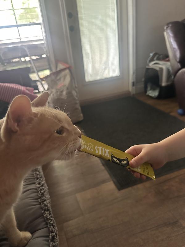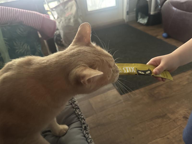 The stix were very beloved in our house. They were easy to use, seemed tasty to my cat, but did have a bit of that overwhelming fishy smell that can come with fish cat food. I liked that the stix were easy to and single serve. If I could change one thing it would be to make them smaller with more in the pack. Now my cat was perfectly happy with the size because he ate them up no problem! He would take a lick and look for more while I was trying to squeeze the next bit out. Now like I said it did have a bit of the over whelming fishy smell if the product got on your hand, but I think that’s kinda what my cat loved the most.