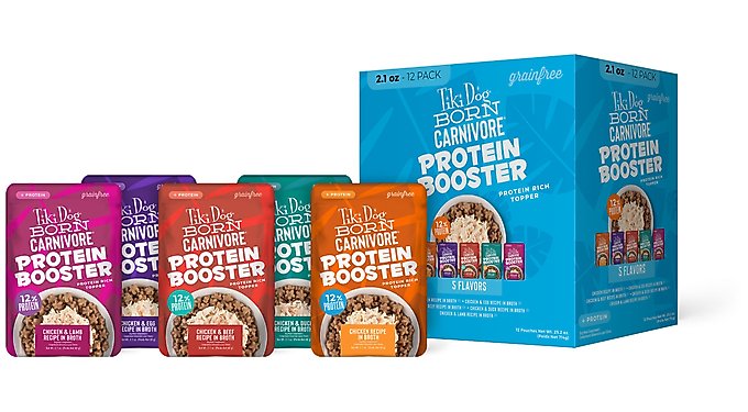 - DealTiki Dog Born Carnivore Protein Booster Chicken & Lamb Recipe in Broth Grain-Free Dog Food Topper, 2.1-oz pouch, case of 12$18.10 Chewy Price$21.48 List Price$17.20 Autoship PricePromo, Spend $100, Get $30 eGift Card with code NEWYEAR +1 deal