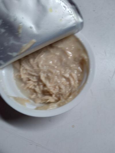 I'm pretty impressed with this food. It looks and smells like chicken unlike some others. I have a picky eater and I mixed this into his dry food and he loved it.