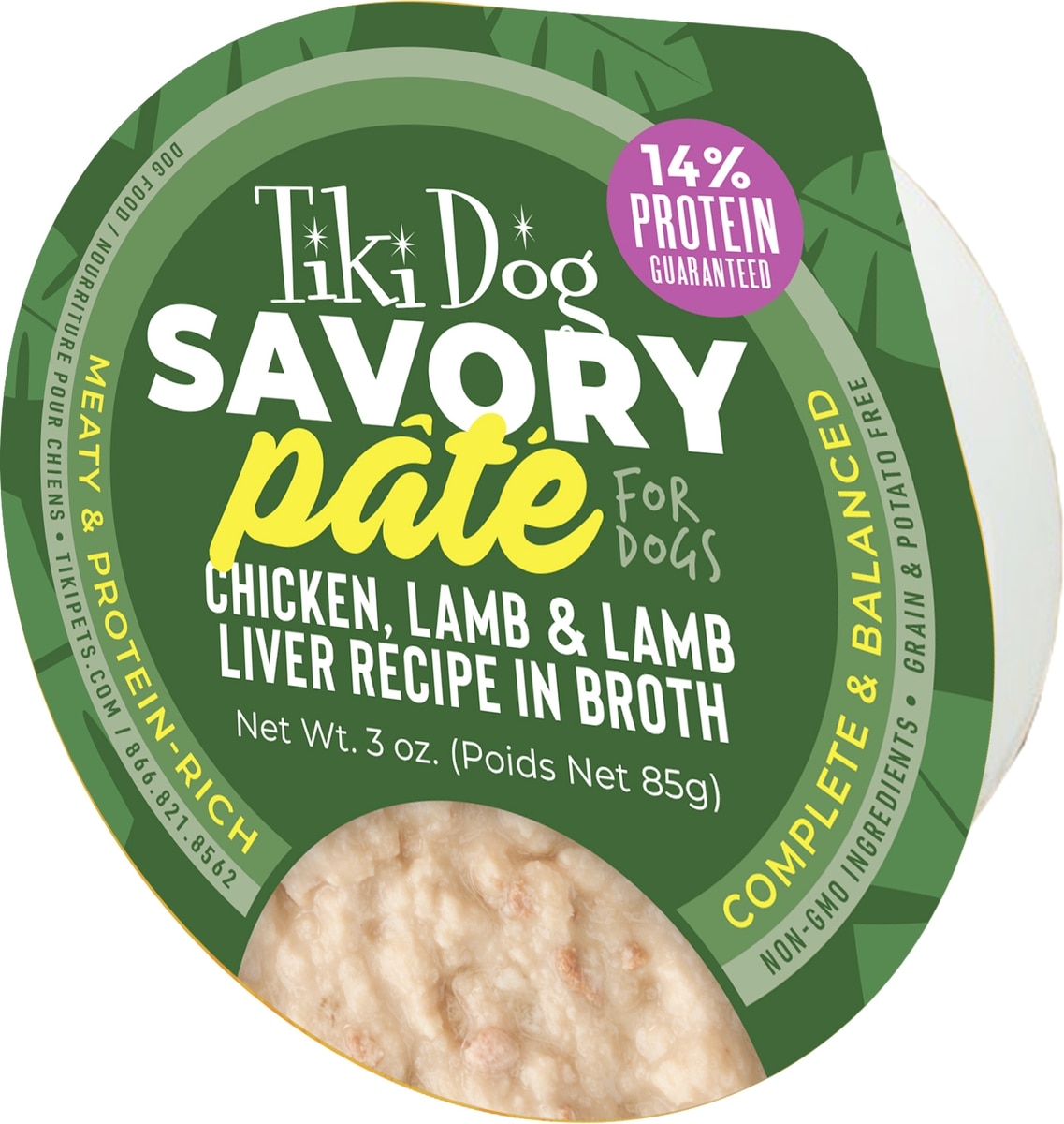 Tiki Dog Savory Grain-Free Chicken, Lamb & Lamb Liver Pate Wet Dog Food, 3-oz cup, case of 4
