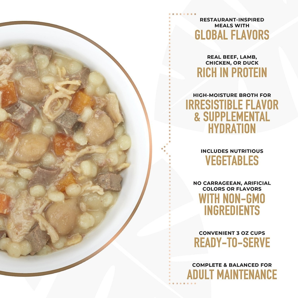 Made with soft, shredded pieces of poultry, fish, or beef, plus chunky, whole vegetables and meaty broth, these recipes give your dog an exciting assortment of global flavors for an unforgettable eating experience.
