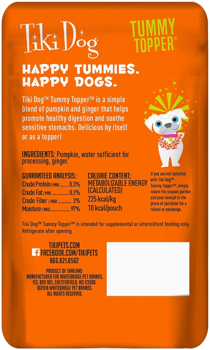 Tiki Dog Tummy Topper Pumpkin & Ginger Puree Grain-Free Wet Dog Food Topper, 1.5-oz pouch, case of 12