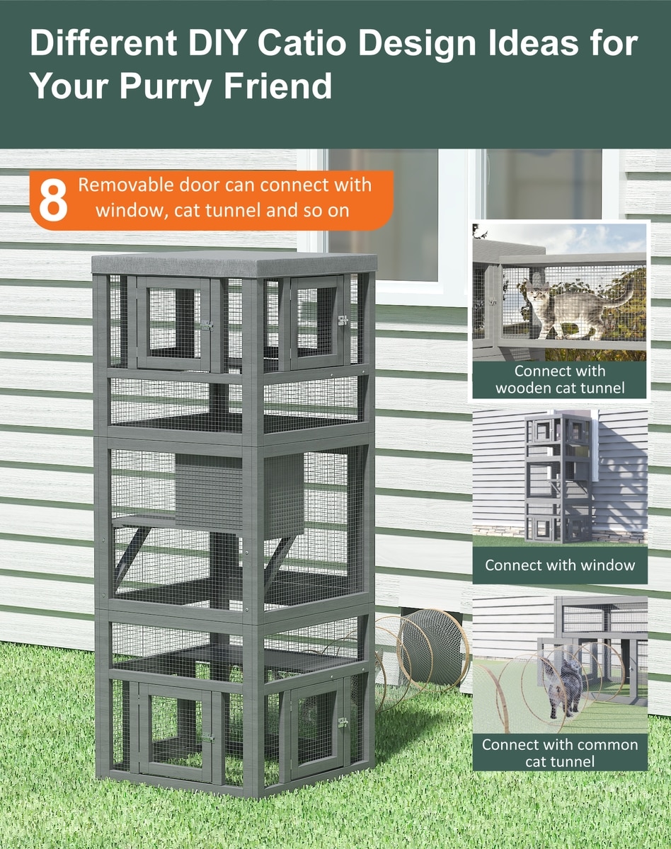 TIMHAKA 3 Tier Catio Cat Enclosure, Grey