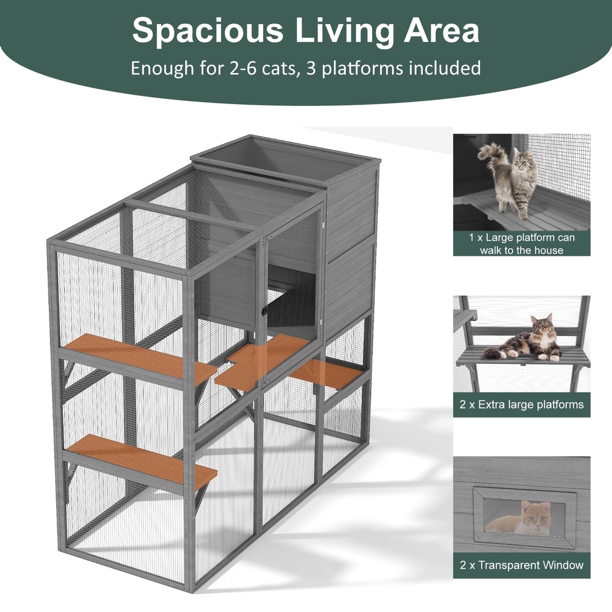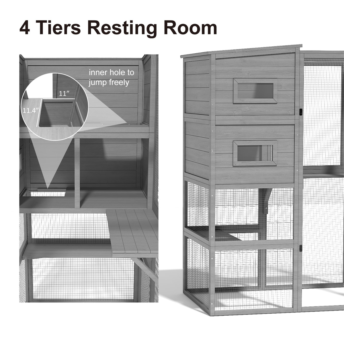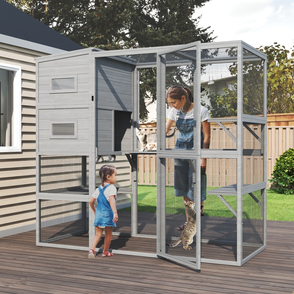 TIMHAKA 4 Tier Catio Outdoor Cat House, Grey