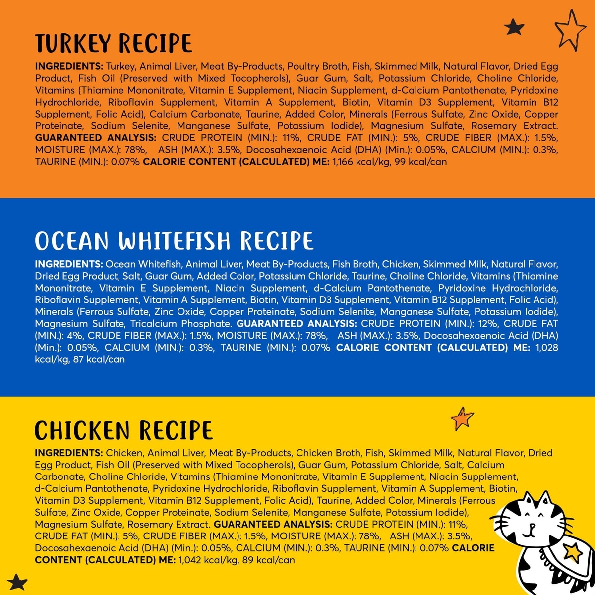 Tiny Tiger, Kitten Classic, Variety Pack, Whitefish & Poultry Pate Recipe, Canned Cat Food, 3oz,case of 24—Your kitten is a tiny tiger at heart. Bring out their stripes with recipes tailored to their nutritional needs, including real animal protein to support everyday energy and all those growing muscles, and a balanced blend of vitamins and minerals to support healthy growth and development. As natural carnivores, kittens crave protein. With real fish or poultry as the #1 ingredient, they’ll be roaring come mealtime. Well, working on that roar, anyway. And you can feel good knowing every bite nourishes them from nose to tail, with real broth and milk for a healthy boost of hydration. These smooth paté recipes are crafted without any corn, wheat, or soy ingredients.