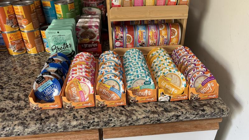 - DealFriskies Lil' Soups with Skipjack Tuna in a Velvety Tuna Broth Senior Formula Lickable Cat Food Topper, 1.2-oz tub, case of 8$8.80 Chewy Price$10.64 List Price$8.36 Autoship PricePromo, Spend $100, Get $30 eGift Card with code NEWYEAR +1 deal
