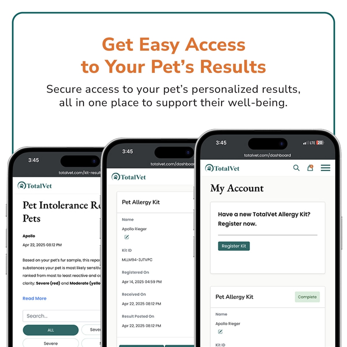 Step 1: Upon receiving your Pet Allergy Test Kit, register the unique kit ID online (instructions are included with each kit).