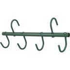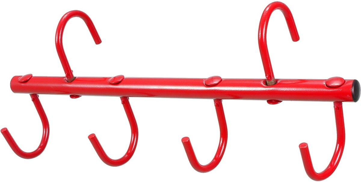It features 4 swivel hooks for convenient storage of bridles, halters, and leads.