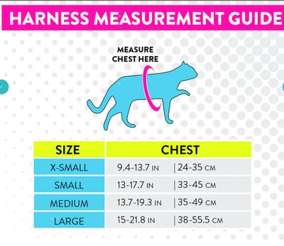 Please see the attached size chat to see where to measure your cat. Your cat should You want your cat's harness to be snug, but not restrictive. When you take the measurement, make sure you are close and tight up against your cat, past all the floof. If your cat is in between sizes, go for the bigger size if your cat is still growing, or the smaller size if they are fully grown.