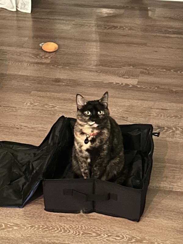 Went on a 5 day cross-country road trip with my cat and this litter box eased any worries I had about traveling with a litter box. I was able to zip it up when moving