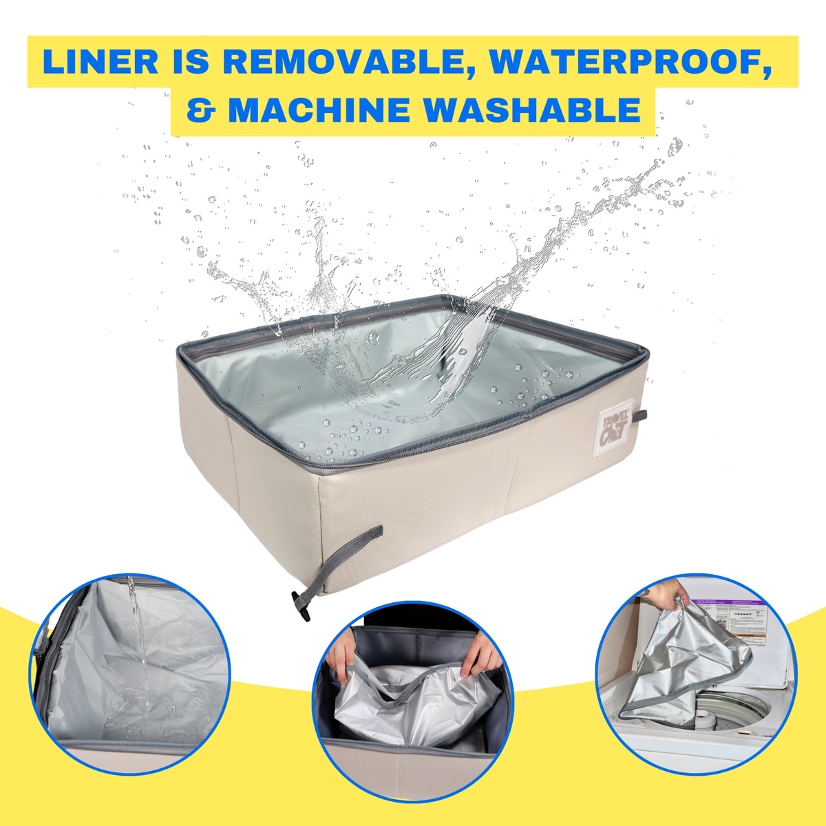 Waterproof and removable, machine-washable interior liner allows for easy cleaning.