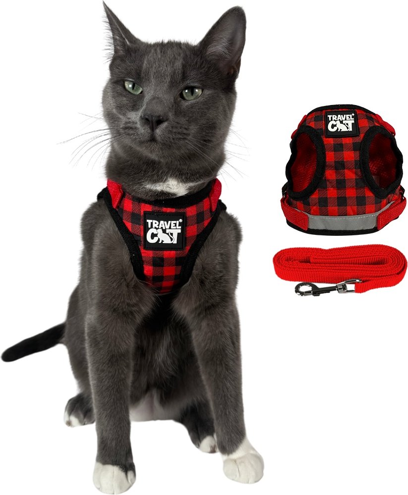 Travel Cat The True Adventurer Reflective Cat & Kitten Harness & Leash, Plaid, X-Small