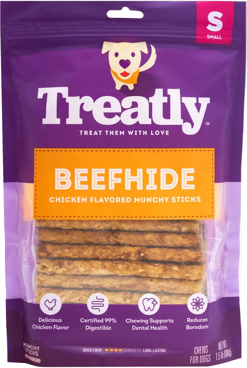 Treatly Beefhide Munchy Sticks 5-in Chicken Flavor Dog Chews, 1.5-lb bag