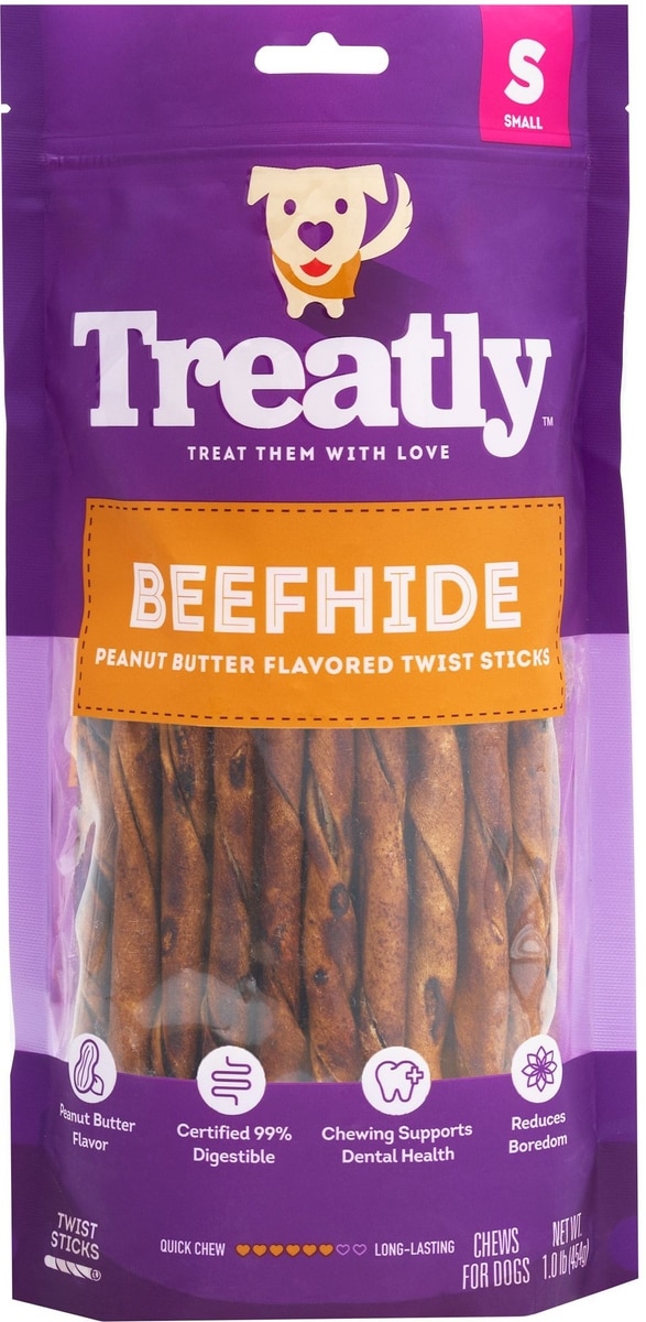 Treatly Beefhide Twist Sticks 5-in Peanut Butter Flavor Dog Chews, 1-lb bag
