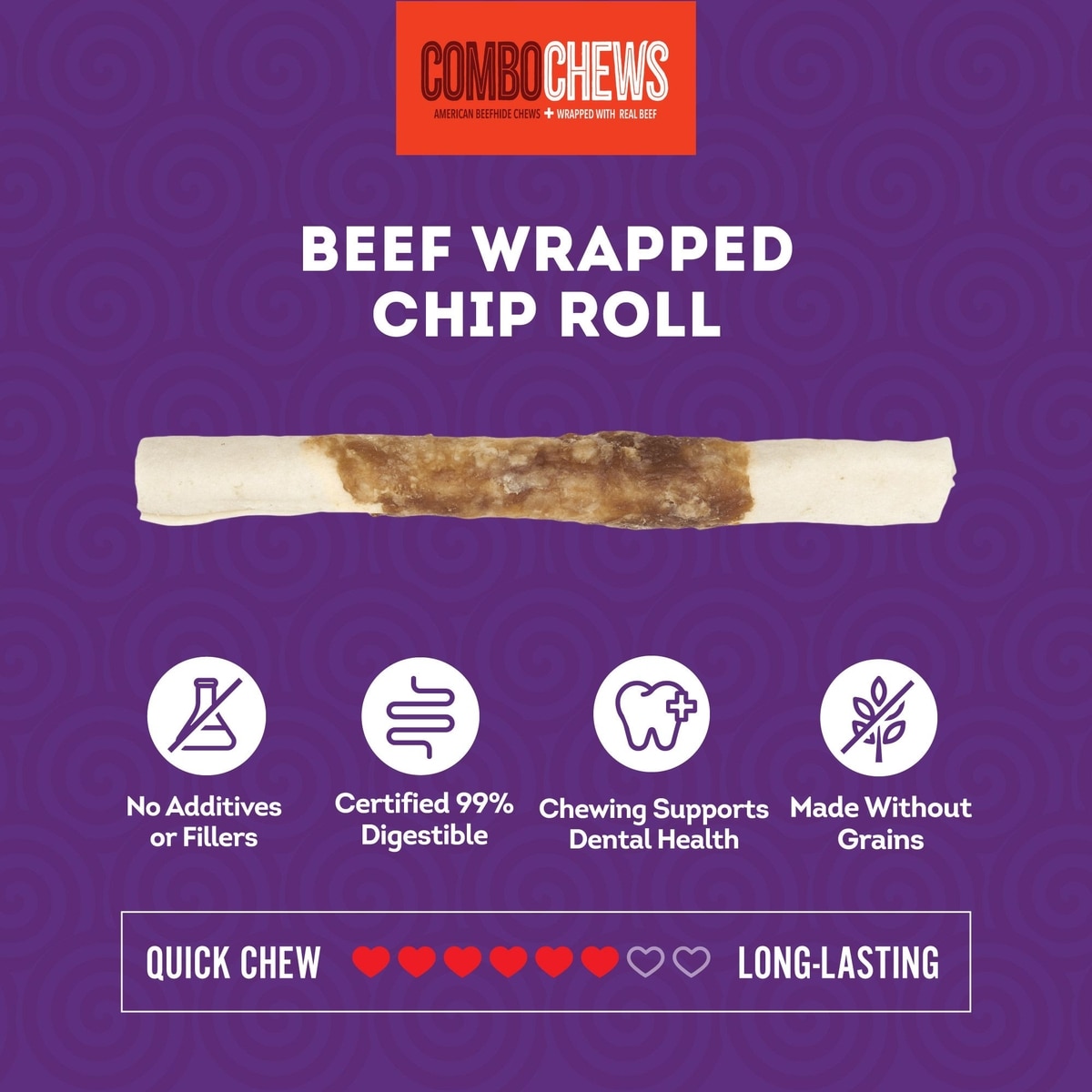 Treatly Combo Beefhide Chip Rolls 5-in with Beef Meat Wrap Dog Chews, 10 count