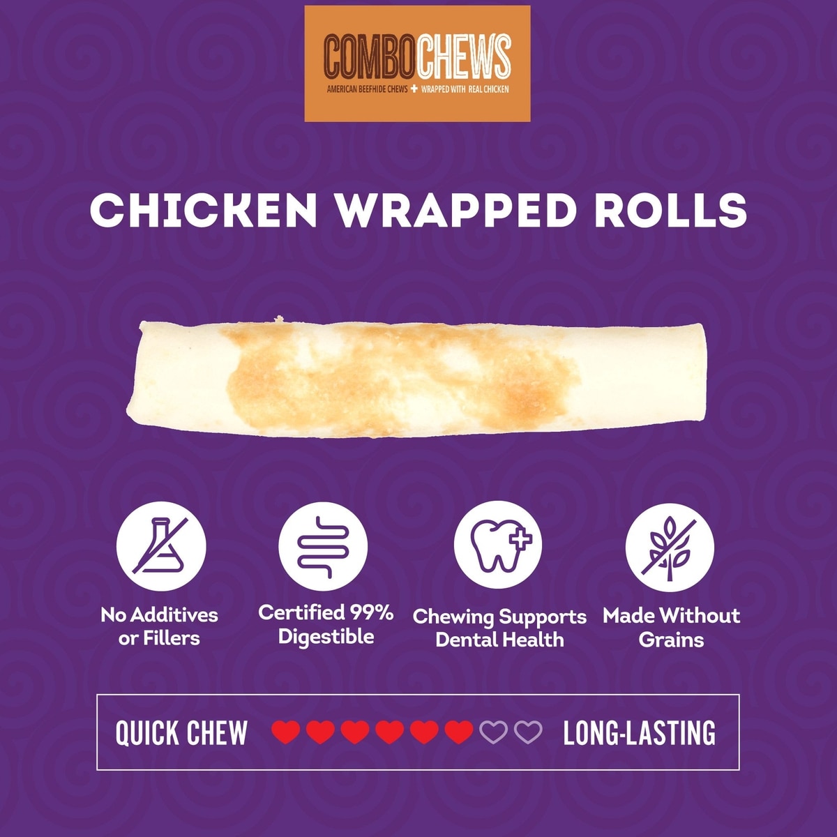 Treatly Combo Beefhide Rolls 7-in with Chicken Meat Wrap Dog Chews, 3 count
