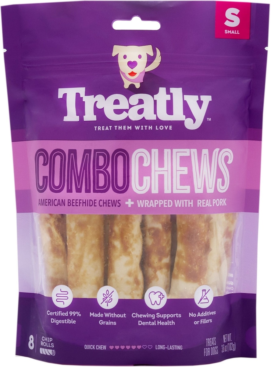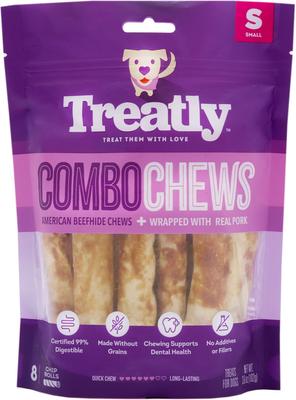 Treatly Combo Beefhide Rolls with Pork Meat Wrap Dog Chews, 8 count, Small