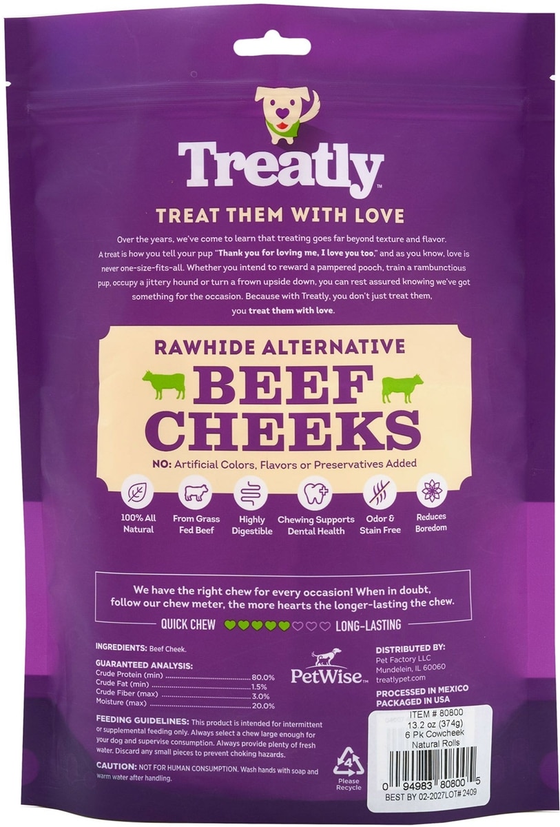 Treatly Cowcheek Rolls 4-in Natural Flavor Dog Chews, 6 count