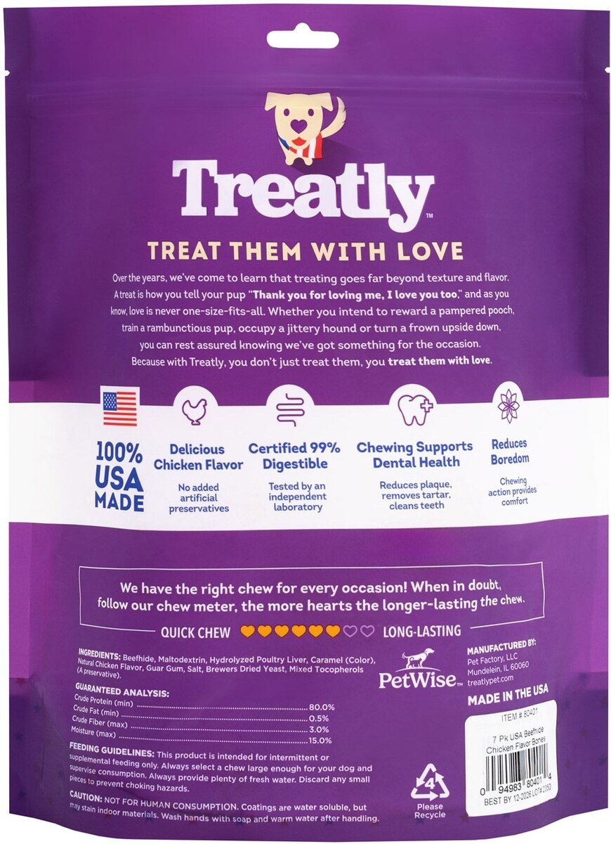 Treatly USA Beefhide Bones 5 to 6-in Chicken Flavor Dog Chews, 7 count