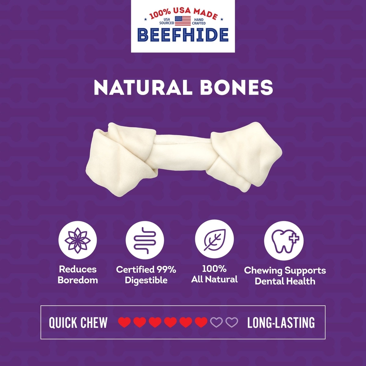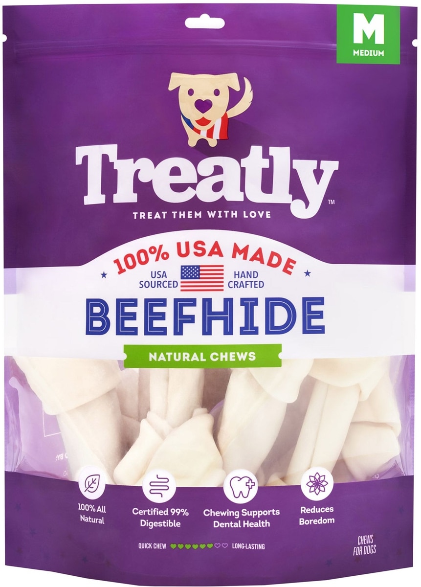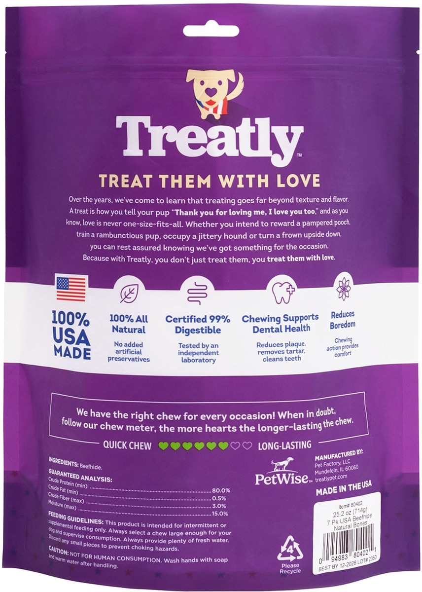 Treatly USA Beefhide Bones 7 to 8-in Natural Flavor Dog Chews, 7 count