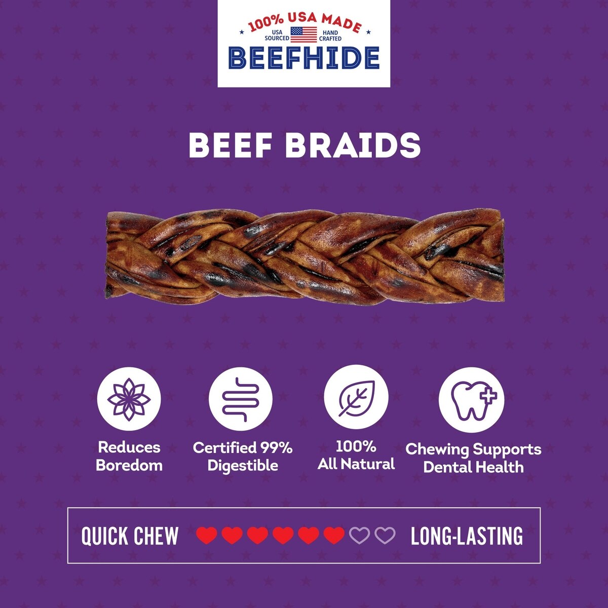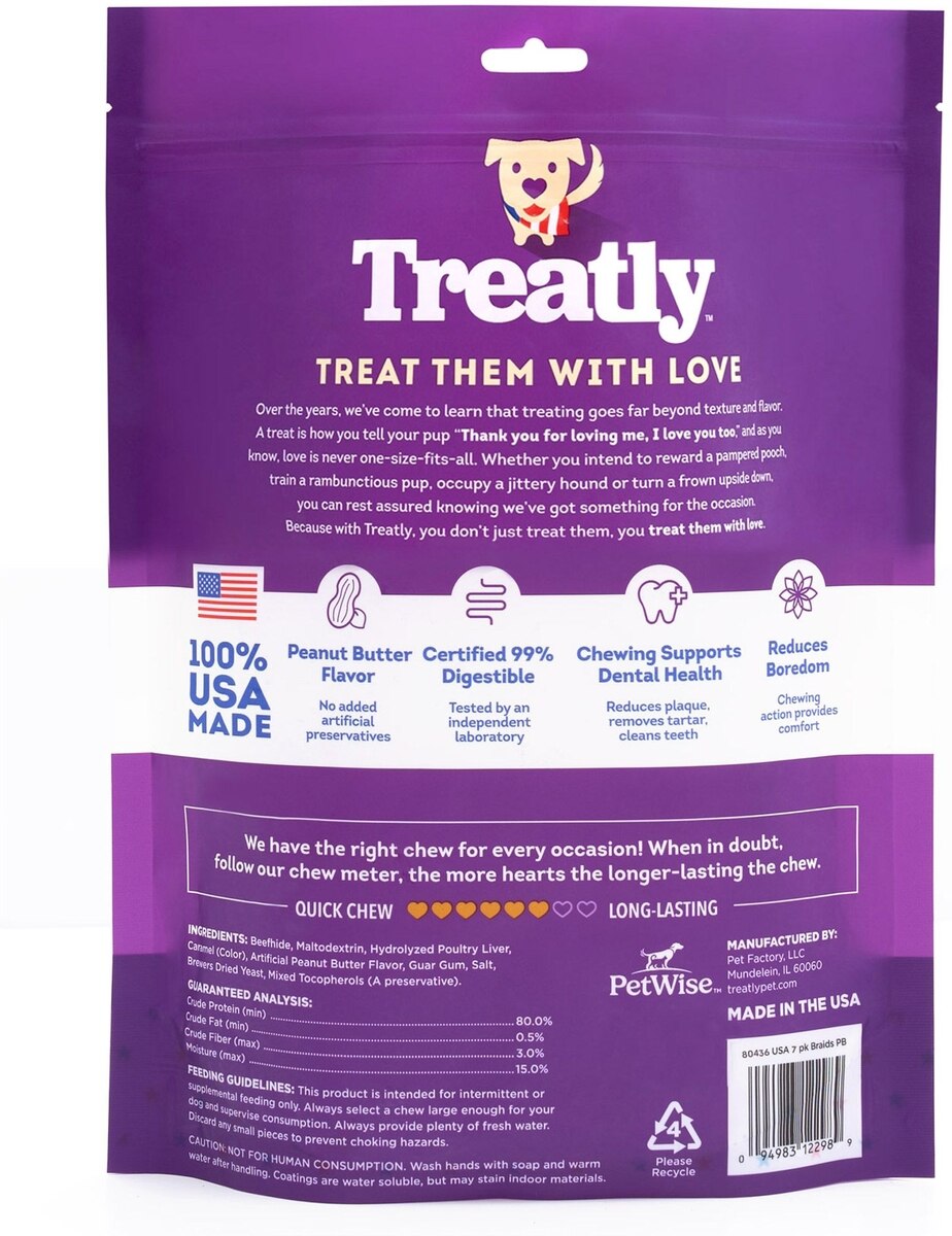 Treatly USA Beefhide Braids 7 to 8-in Peanut Butter Flavor Dog Chews, 7 count