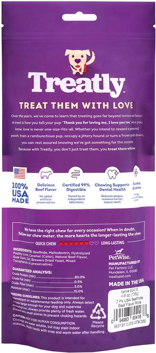 Treatly USA Beefhide Rolls 8 to 9-in Beef Flavor Dog Chews, 2 count