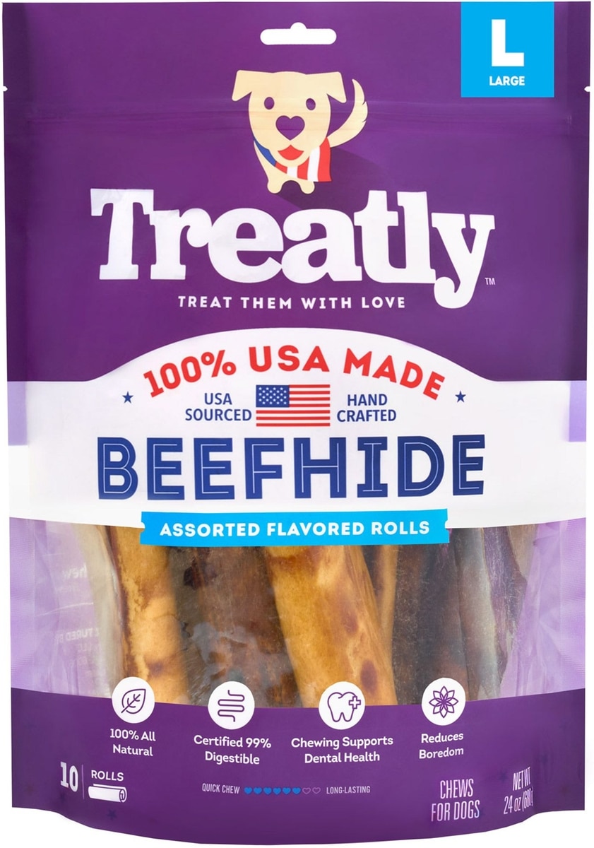 Treatly USA Beefhide Rolls 8 to 9-in Chicken & Beef Flavor Dog Chews, 10 count