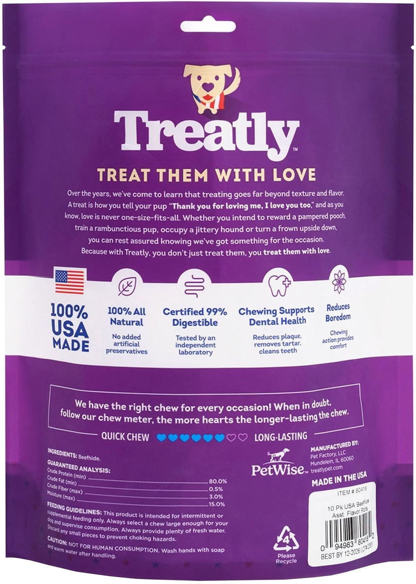 - DealPet Factory Beefhide 8-inch Rolls Natural Flavored Dog Hard Chews, 10 count$22.98 Chewy Price$35.99 List Price$21.83 Autoship PricePromo, Spend $100, Get $30 eGift Card with code NEWYEAR +1 deal