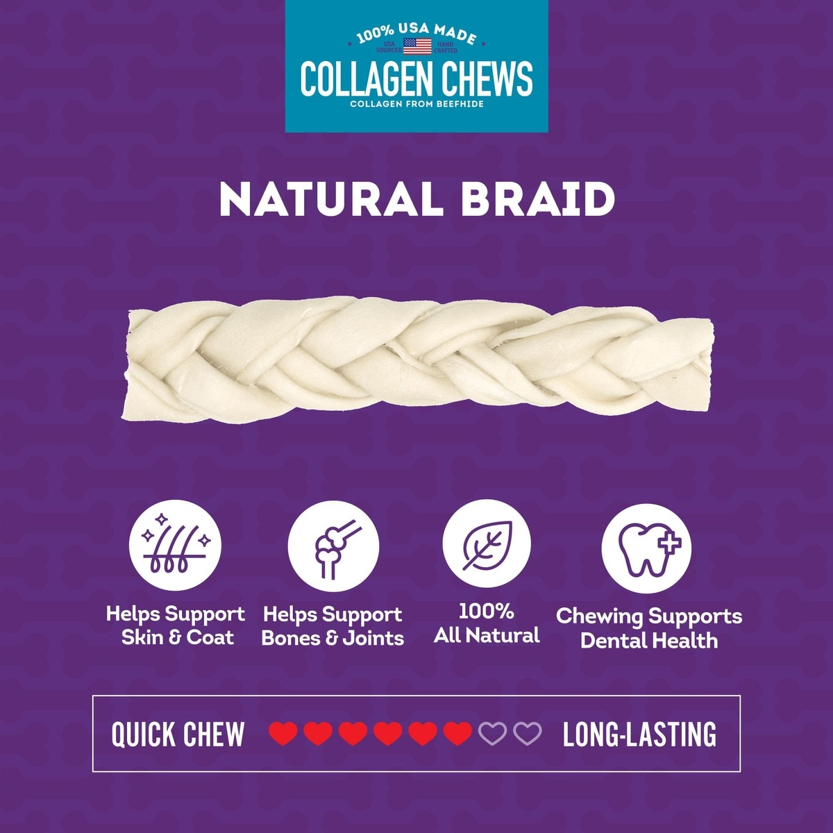 Treatly USA Collagen Braids 6 to 7-in Natural Flavor Dog Chew Treats, 15 count