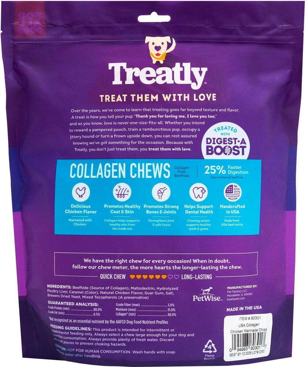 Treatly USA Collagen Chips Assorted Chicken Marinade Flavor Dog Chews, 14-oz bag