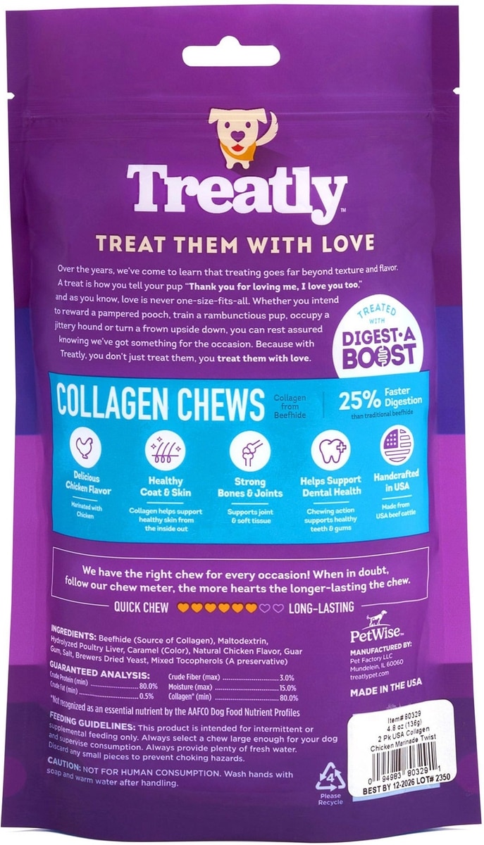 Treatly USA Collagen Twist 6 to 7-in Chicken Marinade Flavor Dog Chews, 2 count