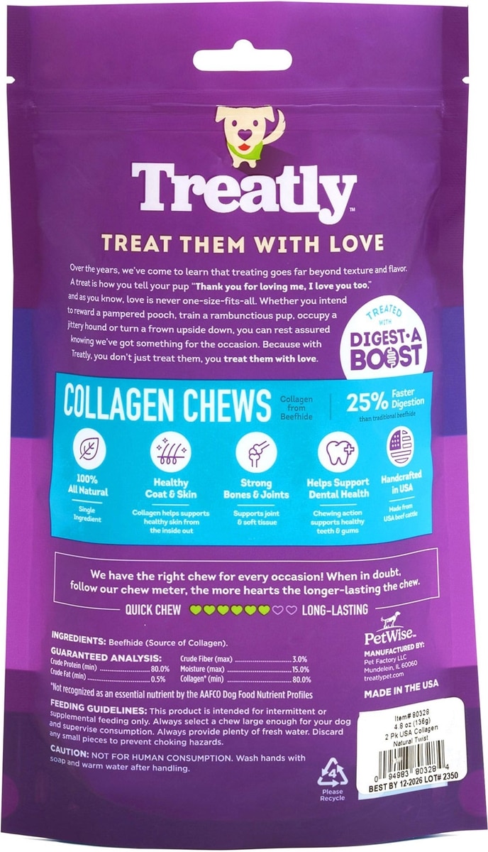 Treatly USA Collagen Twist 6 to 7-in Natural Flavor Dog Chews, 2 count