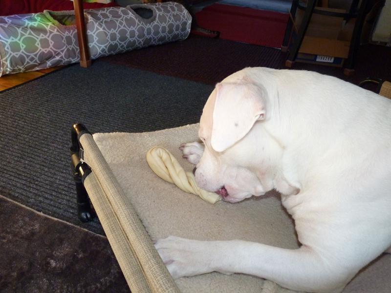 I'm always looking for non-rawhide chews that take my insanely-power-chewing, always-starving pittie mix a while to eat. I saw these on sale at a local farm store