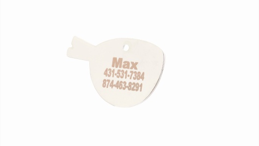 Trill Paws will meticulously engrave up to 4 lines on every ID tag using an advanced Raycon laser machine. This process ensures clear, durable, and long-lasting text, keeping your pet's essential information visible and secure.