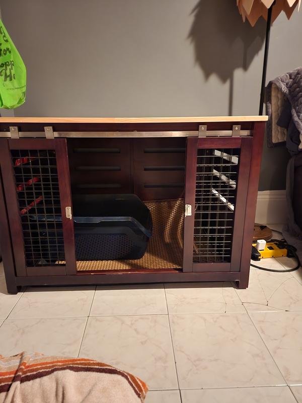 I needed for large litter box as i have multiple cats. It's beautiful and well made in person I took 1 star off cause the tray is made out of foam for the price it should be of better material so pet doesn't chew