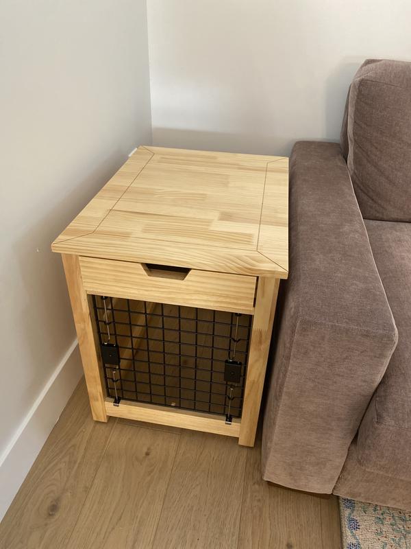 TRINITY Crate End Table Single Door with Drawer Furniture Style Dog & Cat Crate, Natural, 18-in