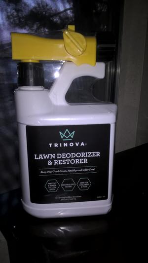 I have three dogs and other dogs who visit occasionally, so our yard has accumulated a lot of dog pee over the years. I feel like we are constantly fighting a battle with a dog urine smell. I have tried two other products before this one. The other two worked for a short while. However, this product seems to do the job and leaves a slight scent, but dissipates quickly as well. I was skeptical at first and had to apply this "TriNova Lawn Deodorizer & Restorer Spray, 32-oz bottle" four times on one turf area because it was so soiled! It seemed to have worked so I tried only one application on my other turf area, and the odors appear to be gone. I have a very sensitive nose (My husband compares my ability to detect scents to a dog’s. LOL!) and this stuff seems to be doing the job! I feeling I have finally found our go-to product! Just make sure you read carefully and remember to apply this at night. The enzymes or bacteria that fight all the urine odor works when it’s moist. I’m glad I read the instructions because it clearly states to NOT apply in sunlight. The nice thing is that this uses VERY little of the enzymatic cleaner when used in combination with the sprayer. The sprayer makes it really easy to apply and clean our turf. I hope this helps keep our yard free from a urine smell. I will update you if anything changes.