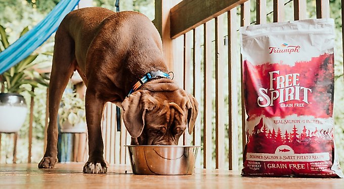 Triumph Free Spirit Dog Food provides total nutrition with highly digestible ingredients in grain-free recipes. Made without corn, wheat, soy, artificial colors, flavors, preservatives or fillers. Made right to fuel your dog’s next adventure.