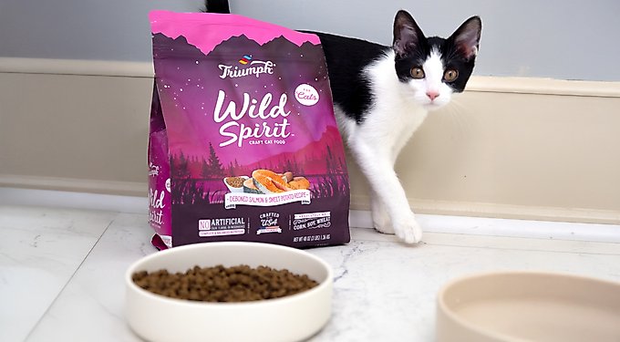- Triumph Wild Spirit Deboned Salmon & Sweet Potato Recipe Dry Cat Food, 7-lb bag$19.47 Chewy Price$21.99 List Price$18.50 Autoship PricePromo, New Customers Only: Spend $49+, Get $20 eGift Card