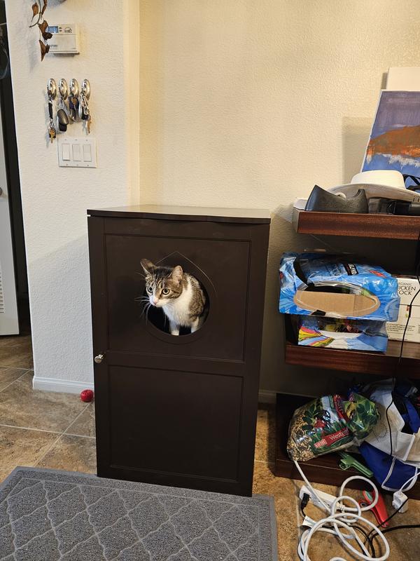 This enclosure features an opening on the second floor to provide top entry to a litter box on the bottom level.