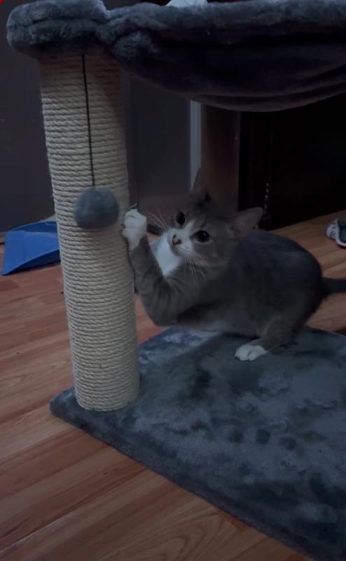 The scratching posts are made from engineered wood wrapped in a natural sisal material.