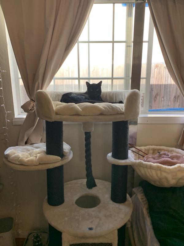 This..by far is the best cat tree I have ever purchased. It may be expensive, but it is so sturdy and there is an excellent amount of room for my cats to sleep and