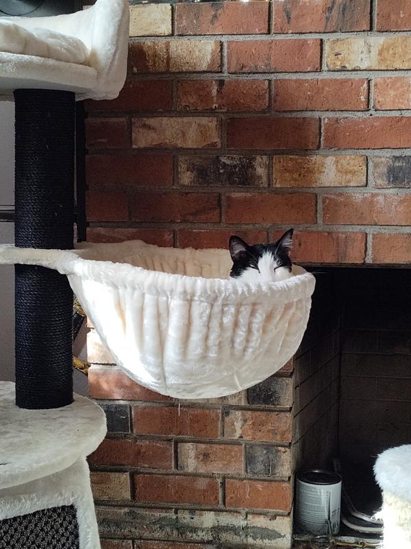 My cats love the hammock and all of the scratching posts. The cushioned pads for each platform are nice and the large rope is great. There seems to be a design flaw in that the top platform is the same diameter of the platform below it and neither of my cats can find a way to climb up there. It would seem that perhaps they could jump from the 2nd platform but the surround around the top platform prohibits that. If the top platform was even 2 inches smaller I think it would be much more accessible. It seems like a good sturdy cat tree but unfortunately, it's barely getting any use.