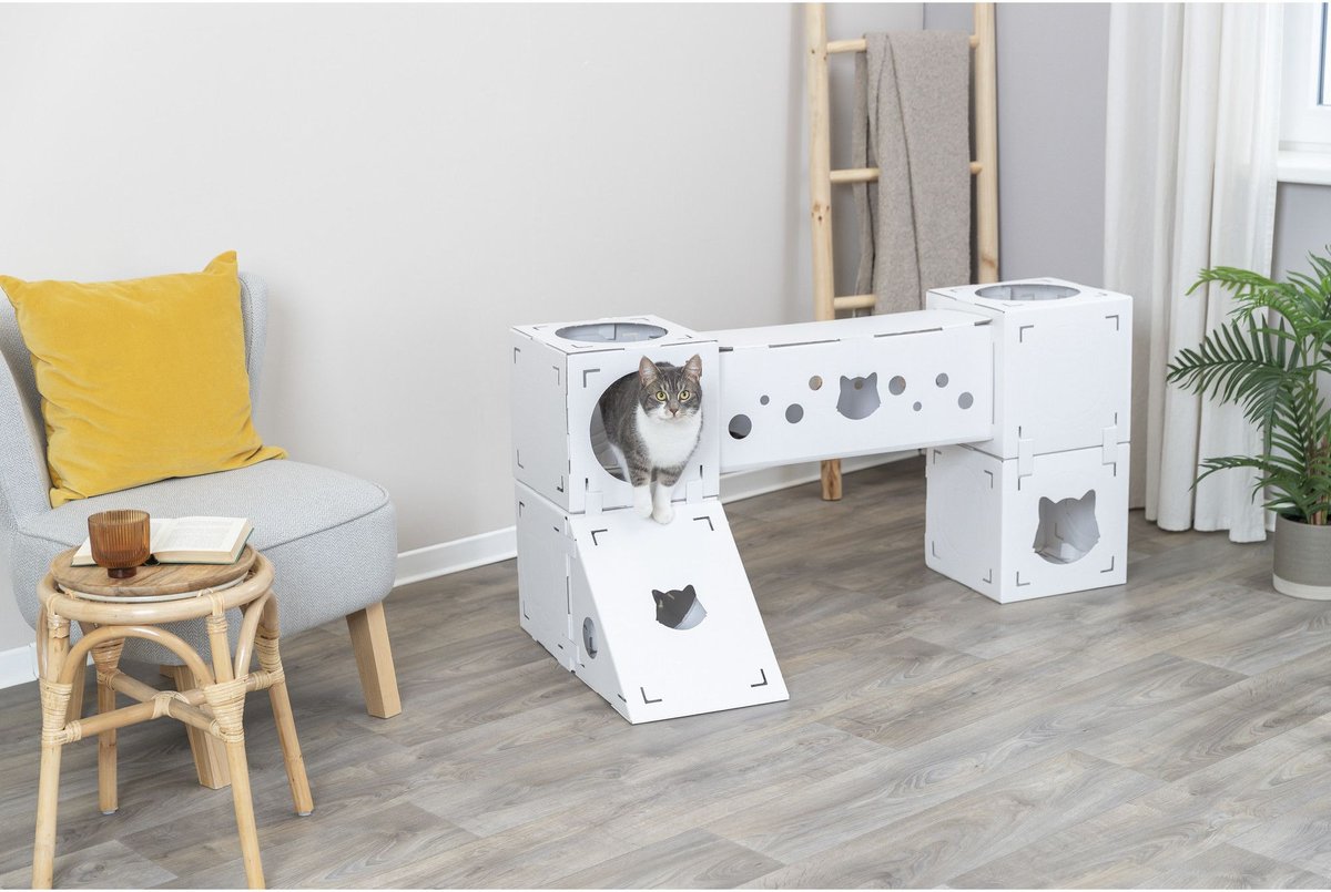 - Comes with 4 cubes, 1 tunnel, and 1 ramp, but you can expand it with a second set or compatible add-on accessories from Trixie (each sold separately).