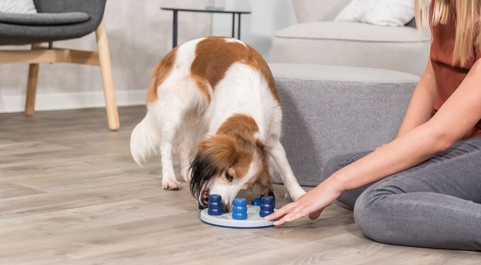 TRIXIE puzzle games can be used as enrichment toys or as slow feeders for your dog. Using a puzzle game as a feeder encourages your pet to eat slower, develop healthier eating habits, and avoid issues like bloating, indigestion, and obesity. It’s a great way to add fun to mealtime and prevent your pup from wolfing down food.