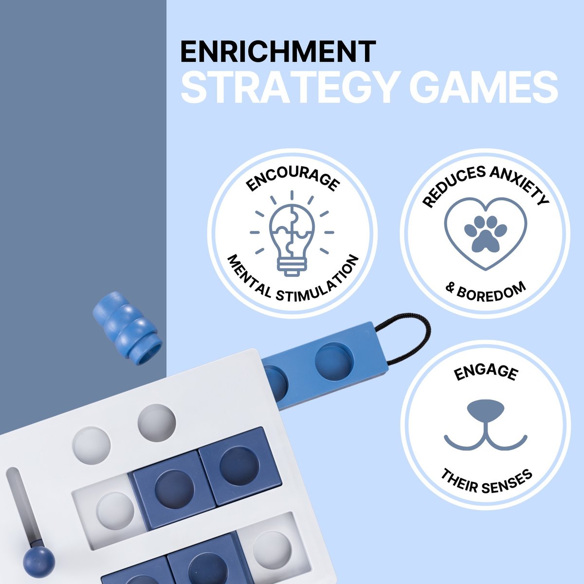Puzzle games can help promote a stronger bond between you and your dog. Showing your dog how to solve the puzzles and retrieve treats helps you foster a sense of teamwork and collaboration. And if your pet has trouble, you can help out or offer another challenge to keep him engaged. These games provide a great way to spend quality enrichment time with your best friend.