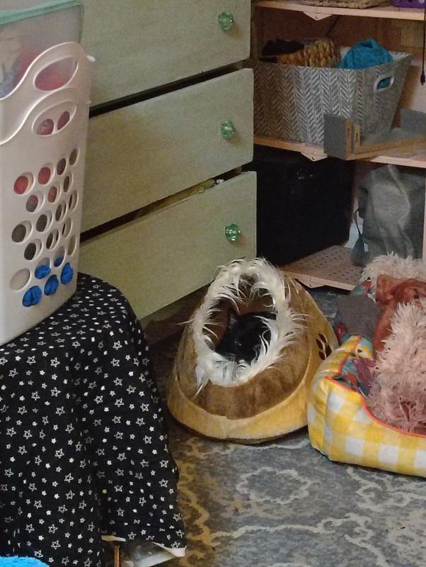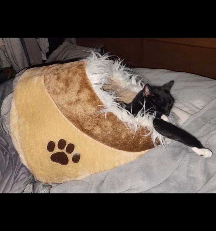 This little hidey hole bed is adorable! Our 5 week old kitten loves it. We found her hunkered in a bush under some leaves & brush. So we thought this would work