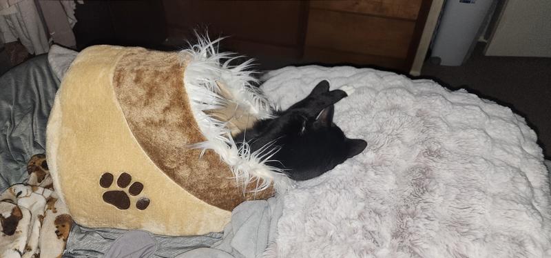 So cute cats love to hide inside & doesn’t cave in like others so they actually go inside instead of on top.