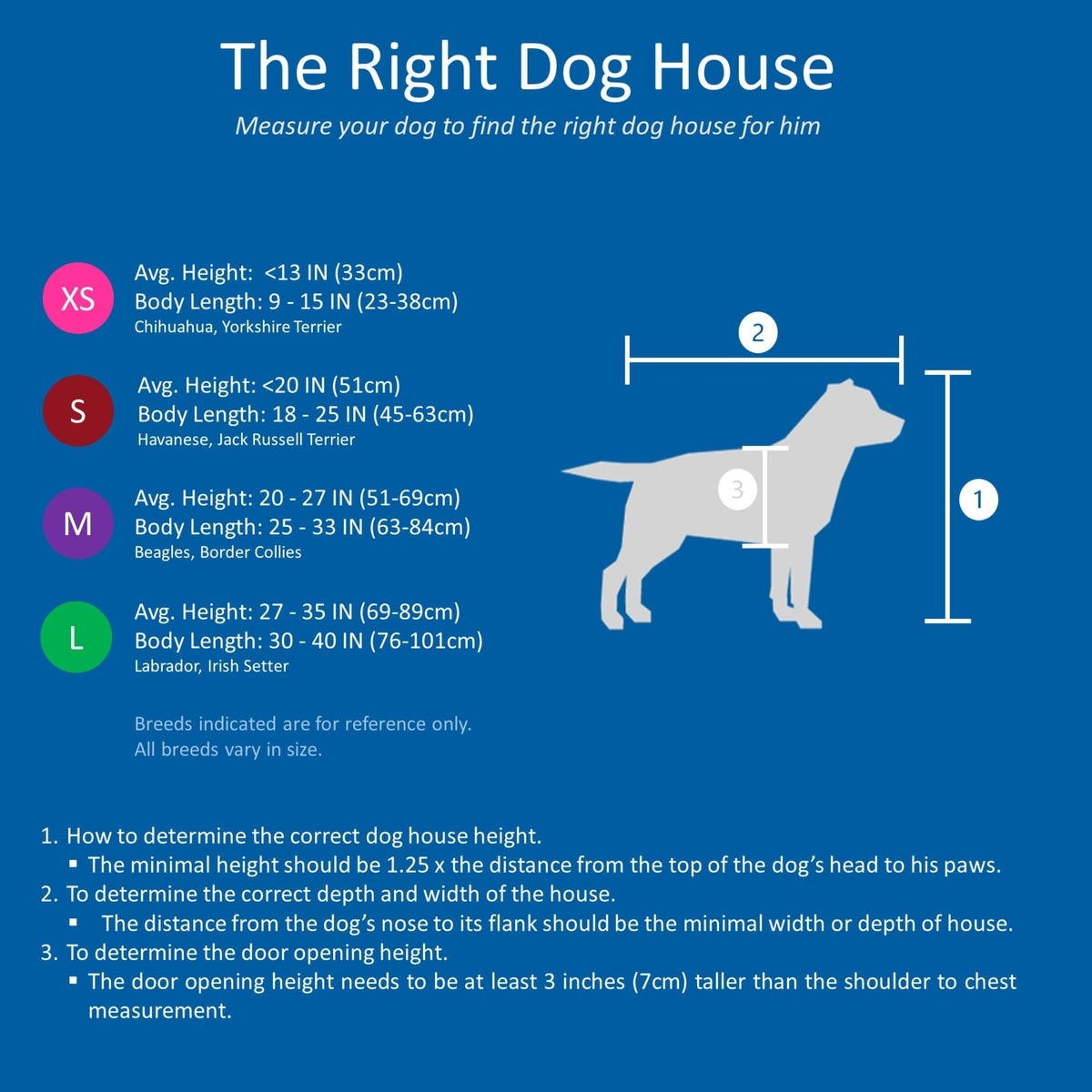The dimensions of the small/medium are 33.5 x 23.5 x 22.75 inches, the large is 40.75 x 26.75 x 28.25 inches, and the x-large is 45.5 x 31 x 32.25 inches.