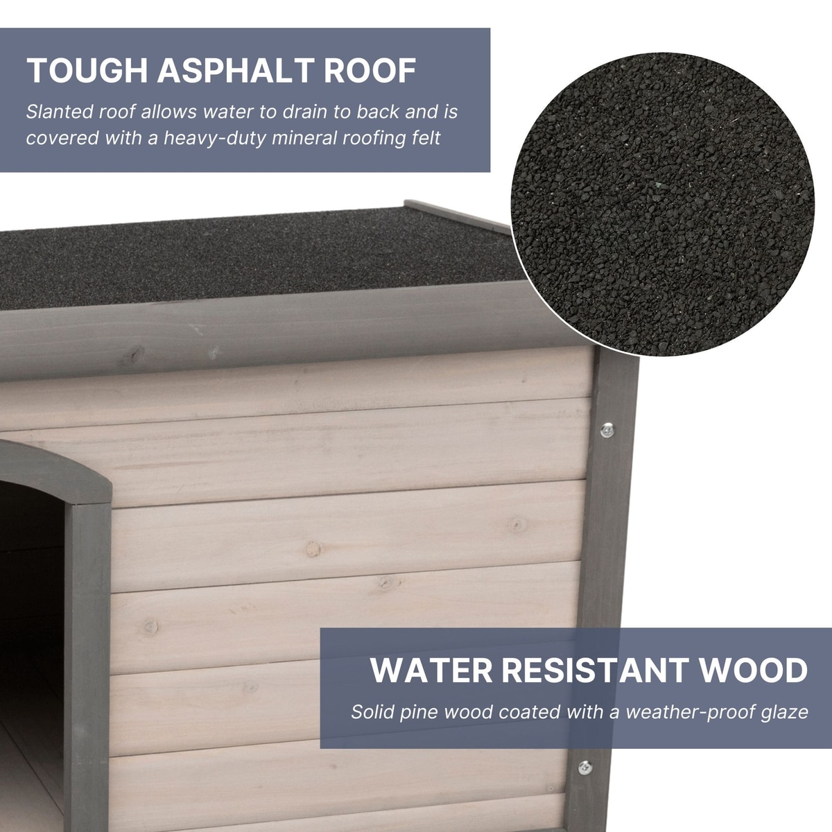 This dog house is topped with a waterproof coating to prevent leaks and drafts from entering with a tightly sealed tongue-and-groove construction. The floor is able to easily be removed for cleaning by popping it up and out.